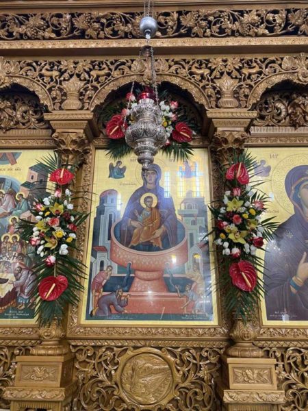 Προ της απολύσεως πραγματοποιήθηκε Ιερά Λιτάνευση της θαυματουργού Ιεράς Εικόνος της Υπεραγίας Θεοτόκου, γύρω από τον Ναό και η καθιερωμένη αρτοκλασία.