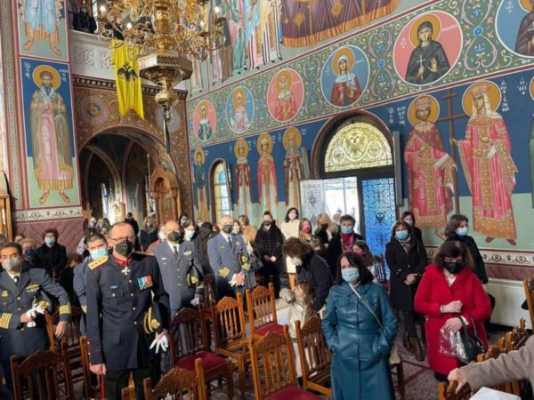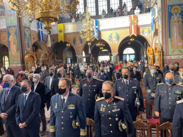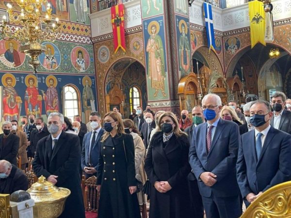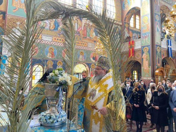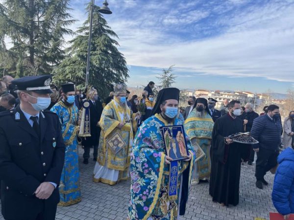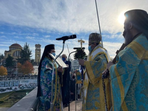 Προ της απολύσεως τελέσθηκε η Ακολουθία του Μεγάλου Αγιασμού παρουσία των πολιτικών και στρατιωτικών Αρχών του Νομού και ακολούθως έριψε τον Τίμιο Σταυρό στα νερά του Πηνειού ποταμού.