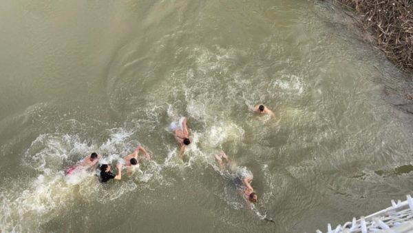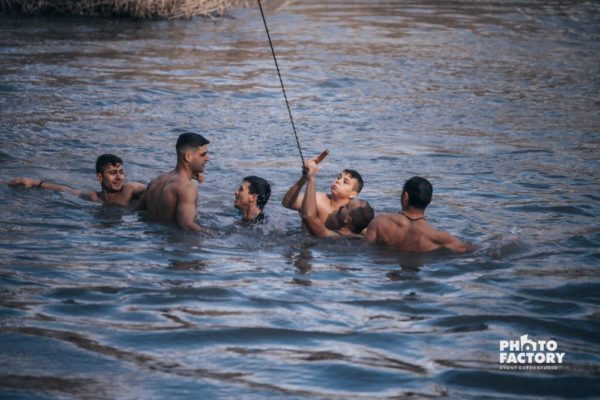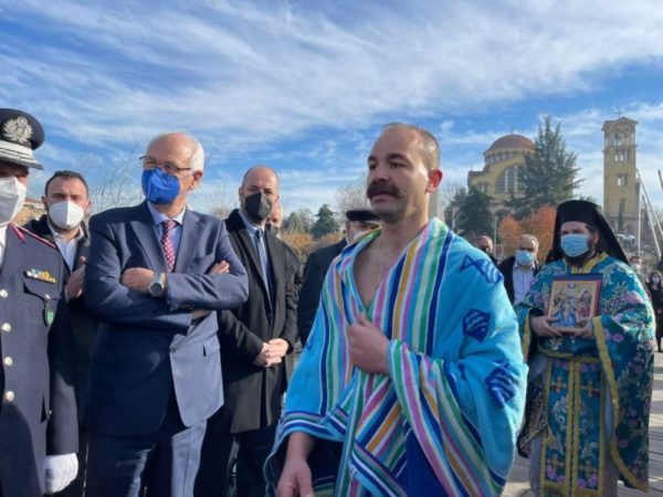 Τον Τίμιο Σταυρό τον έπιασε ο κ. Αθανάσιος Καραπαρίσης, ο οποίος βούτηξε στον Πηνειό μαζί με τον δεκατεσσάρων υιό του.