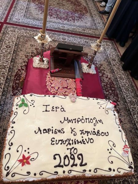 Ο Σεβασμιώτατος Μητροπολίτης Λαρίσης και Τυρνάβου κ. Ιερώνυμος ευλόγησε τη βασιλόπιτα, μίλησε πατρικώς στους διακονούντες και εργαζομένους στο χώρο διοικήσεως της Μητροπόλεως, ενώ όλοι οι συμμετέχοντες μέσα σε κλίμα εγκαρδιότητας αντάλλαξαν θερμές ευχές για το νέο έτος 2022.