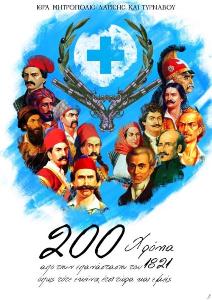 Με αφορμή την επέτειο της συμπλήρωσης 200 ετών από την Ελληνική Επανάσταση του 1821, η Ιερά Μητρόπολη Λαρίσης και Τυρνάβου προχώρησε στην κυκλοφορία ειδικού τηλεοπτικού σποτ, καθώς και σχετικών αφισών προκειμένου να τιμηθούν οι Νεομάρτυρες και οι Λόγιοι της Θεσσαλίας.
