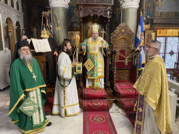 Στον Ενοριακό Ιερό Ναό των Αγίων Κωνσταντίνου και Ελένης Λαρίσης τέλεσε το Μυστήριο της Θείας Ευχαριστίας, σήμερα, Κυριακή Γ’ των Νηστειών, ο Σεβασμιώτατος Μητροπολίτης Λαρίσης και Τυρνάβου κ. Ιερώνυμος, τηρουμένων των υγειονομικών μέτρων.