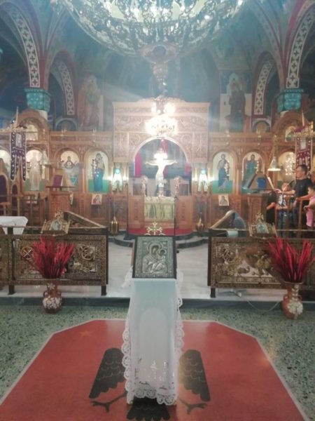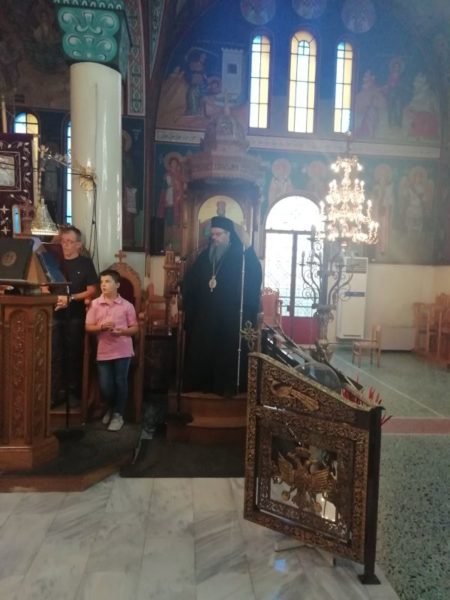 Μετά την απόλυση οι πιστοί έλαβαν την ευχή του Σεβασμιωτάτου ανταλλάσοντας ευχές για το Πάσχα του καλοκαιριού που σε λίγες μέρες θα εορτάσουμε.