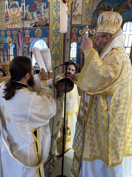 Προ της απολύσεως, ο Ποιμενάρχης χειροθέτησε με το οφφίκιο του Πρωτοπρεσβυτέρου, τον προϊστάμενο του Ναού πατέρα Ιωάννη Παπαϊωάνου, δίνοντας ιδιαίτερη χαρά στους ενορίτες του.