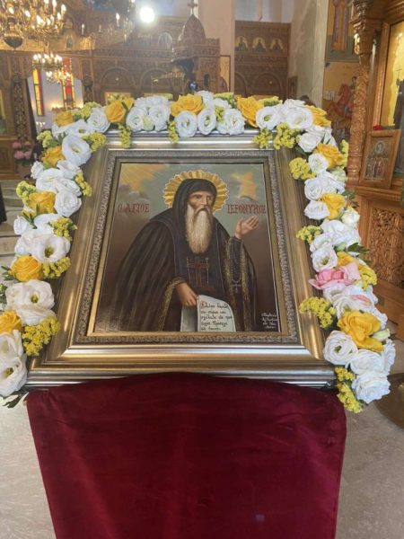 Στην Ακολουθία του Εσπερινού χοροστάτησε ο Σεβασμιώτατος Μητροπολίτης Φθιώτιδος κ. Συμεών, συγχοροστατούντων των Σεβασμιωτάτων Μητροπολιτών Δημητριάδος και Αλμυρού κ. Ιγνατίου, Σύρου, Τήνου και Μυκόνου κ. Δωροθέου και του Ποιμενάρχου μας κ. Ιερωνύμου. Τον Θείο Λόγο υπούργησε ο Πανοσιολογιώτατος Αρχιμανδρίτης κ. Νικόδημος Γαλιάτσος, ο οποίος αναφέρθηκε στην οσιακή βιοτή του Αγίου και τα χαρίσματα που στράτευσε στη διακονία της Εκκλησίας.