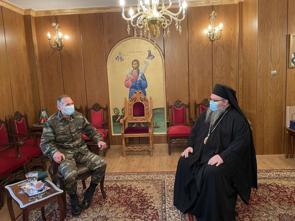 Την καθιερωμένη εθιμοτυπική επίσκεψη στην αίθουσα θρόνου του Επισκοπείου από τον νέο Διοικητή της 1ης Στρατιάς, Αντιστράτηγο κ. Πέτρο Δεμέστιχα δέχθηκε σήμερα, Τετάρτη 31 Μαρτίου 2021, το πρωί, ο Σεβασμιώτατος Μητροπολίτης Λαρίσης και Τυρνάβου κ. Ιερώνυμος.