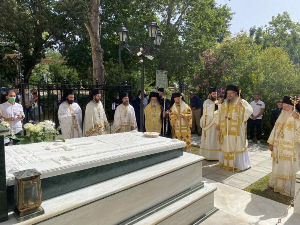 Μετά την τέλεση του Μνημοσύνου, οι Αρχιερείς, οι Ιερείς, ο Δήμαρχος Λαρισαίων κ. Απόστολος Καλογιάννης και οι Βουλευτές οι οποίοι παρίσταντο, κατευθήνθηκαν πίσω από το Ιερό του Ναού στον τάφο του Μακαριστού Αρχιερέως, όπου και τελέσθηκε νεκρώσιμο τρισάγιο.