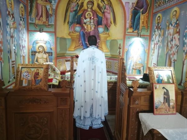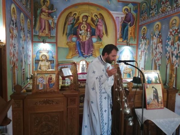 Το Μυστήριο τέλεσε ο Αιδεσιμολογιώτατος Πρεσβύτερος π. Βασίλειος Αρβανίτης, εφημέριος του Ιερού Ενοριακού Ναού Κοιμήσεως Θεοτόκου Καλαμιτσίου Λευκάδος. Πριν το πέρας της Θείας Λειτουργίας τελέσθηκε Τρισάγιο υπέρ αναπαύσεως των κτητόρων του Ιερού Ναού Ευσταθίου και Ευτυχίου Λαλαφράγκου.