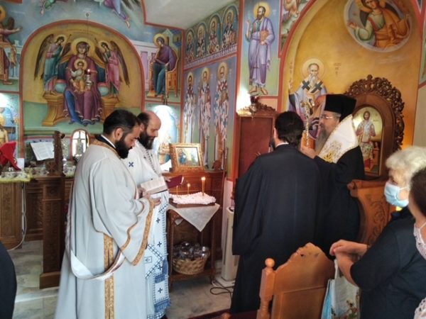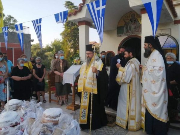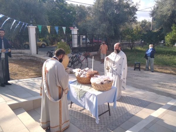 Πριν το πέρας της Πανηγυρικής Θείας Λειτουργίας ο Σεβασμιώτατος Μητροπολίτης Λευκάδος και Ιθάκης κ. Θεόφιλος τέλεσε Ιερό Μνημόσυνο υπέρ μακαρίας μνήμης και αιωνίου αναπαύσεως των ψυχών των δούλων του Θεού, των δωρητών Ευσταθίου και Ευτυχίου Λαλαφράγκου, συζύγου και τέκνου αντιστοίχως της μεγάλης ευεργέτιδος του εν λόγω Ιερού Παρεκκλησίου κ. Περσεφόνης Λαλαφράγκου και στη συνέχεια ευλόγησε τους προσφερόμενους άρτους.