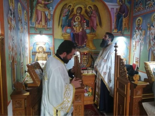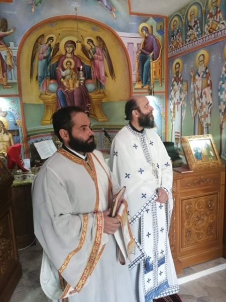 Το πρωί της Δευτέρας εψάλη η Ακολουθία του Όρθρου και στη συνέχεια τελέσθηκε η Πανηγυρική Θεία Λειτουργία. To Μυστήριο της Θείας Ευχαριστίας τέλεσε ο Αιδεσιμολ. Πρωτοπρεσβύτερος π. Παναγιώτης Ζαβιτσάνος, εφημέριος του Ιερού Ενοριακού Ναού Αγίου Αθανασίου Απολπαίνης Λευκάδος πλαισιούμενος από τον ευλαβέστατο διάκονο π. Γεώργιο Αϊβασιλιώτη. Στις παραπάνω Ιερές Ακολουθίες το ιερό αναλόγιο διηκόνησαν οι ευλαβέστατοι διάκονοι π. Σεραφείμ Περγάρης και π. Βασίλειος Μαγκανάκης.
