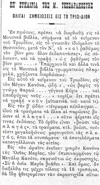 Επ’ ευκαιρία της Μεγάλης Τεσσαρακοστής, η Ιερά Μητρόπολη Μάνης αναδημοσιεύει “Ολίγαι σημειώσεις εις το Τριώδιον” του μακαριστού Αλέξανδρου Παπαδιαμάντη. Το κείμενο είναι δημοσιευμένο στη δεκαπενθήμερο μουσική εφημερίδα της εποχής, “Φόρμιγξ”.