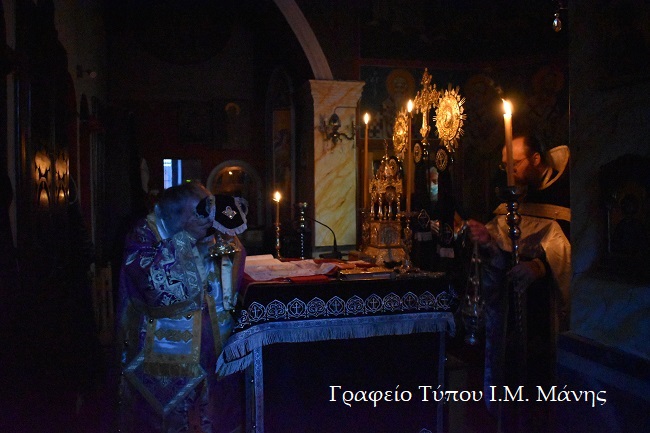 Τη Θεία Λειτουργία τέλεσε ο Σεβ. Μητροπολίτης Μάνης κ. Χρυσόστομος.