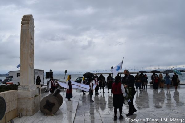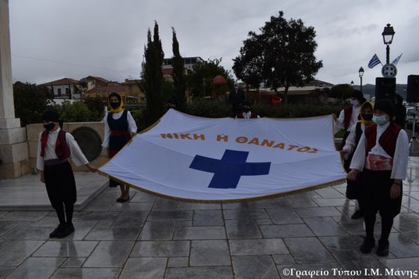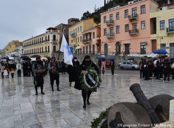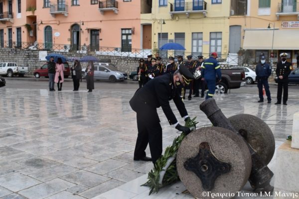 Τον πανηγυρικό της ημέρας εξεφώνησε η φιλόλογος του Γενικού Λυκείου Γυθείου κα Σταυρούλα Αποστολάκου. Μετά την Δοξολογία εψάλη επιμνημόσυνος Δέηση στο Ηρώον της πόλεως Γυθείου και έγινε η κατάθεση δάφνινων στεφάνων.