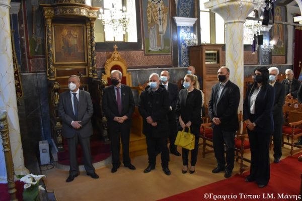 Ακολούθως, ο Σεβασμιώτατος μετέβη στο Κοιμητήριο Αγ. Σώζοντος στο Λιμένι Οιτύλου, όπου ενώπιον της προτομής του μεγάλου εθνεγέρτου αντιστρατήγου ήρωος Πετρόμπεη Μαυρομιχάλη, τέλεσε Τρισάγιο υπέρ αναπαύσεως της ψυχής του.
