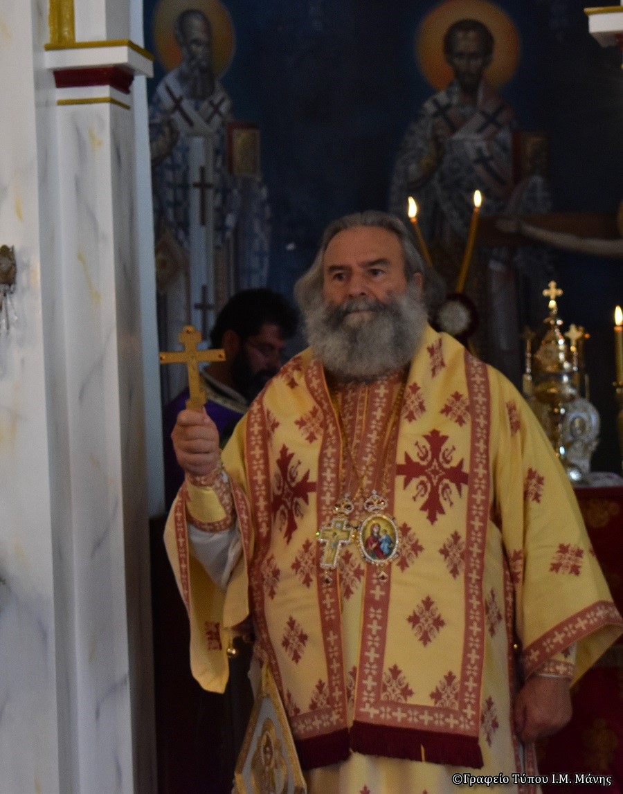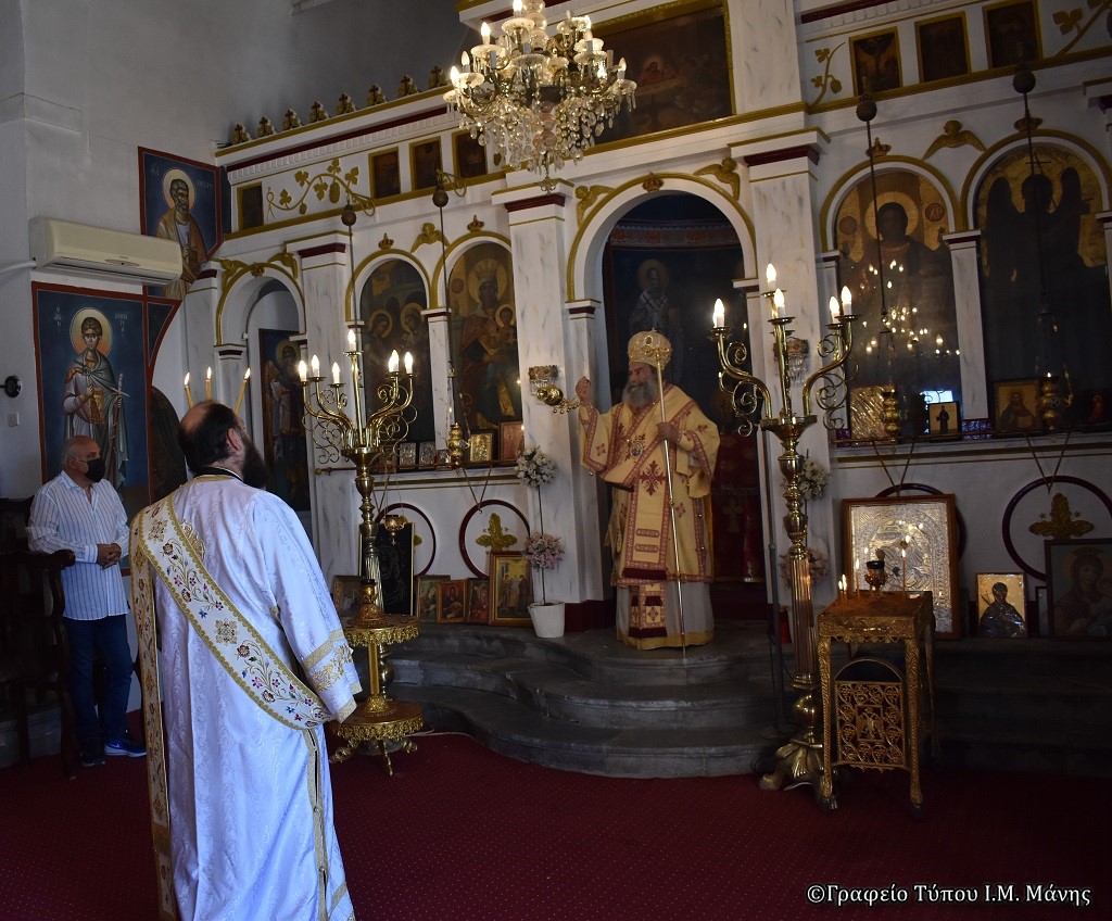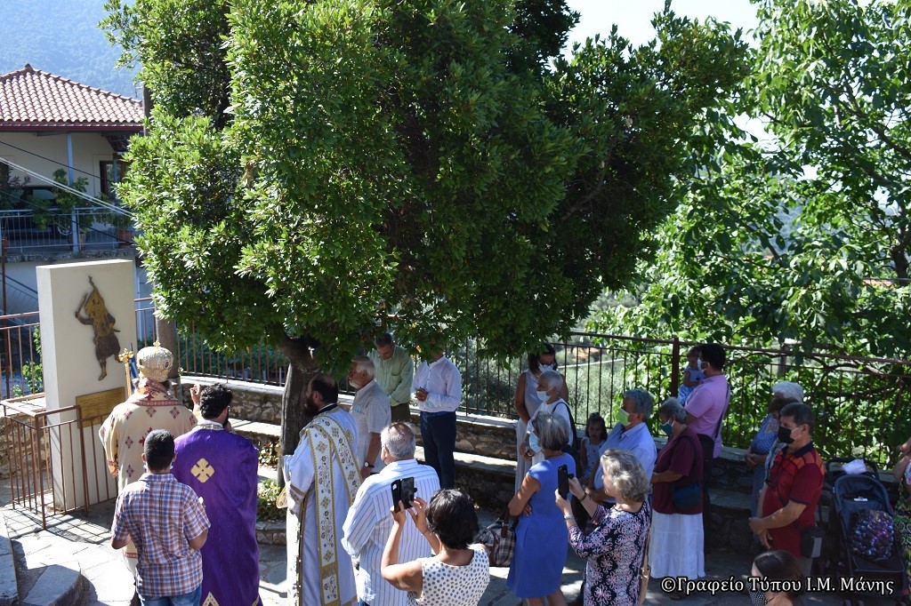 Στο τέλος, ο Σεβ. τέλεσε και επιμνημόσυνη δέηση για τους Μανιάτες ήρωες του 1821 στο εκεί μνημείο.