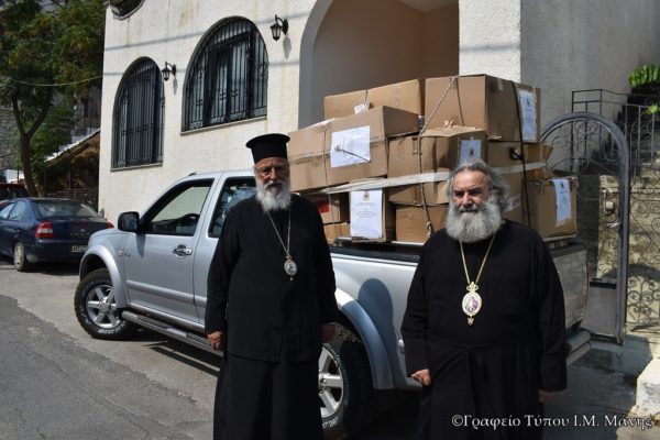 Ο Σεβασμιώτατος Μητροπολίτης Μαντινείας και Κυνουρίας κ. Αλέξανδρος, την Παρασκευή 20 Αυγούστου, επισκέφθηκε, τον Σεβασμιώτατο Μητροπολίτη Μάνης κ. Χρυσόστομο Γ’, στο πλαίσιο της ηθικής συμπαράστασης και ενίσχυσης των πυρόπληκτων συνανθρώπων μας στη Μάνη και προσέφερε πολλά τρόφιμα και ενδύματα υπέρ αυτών.