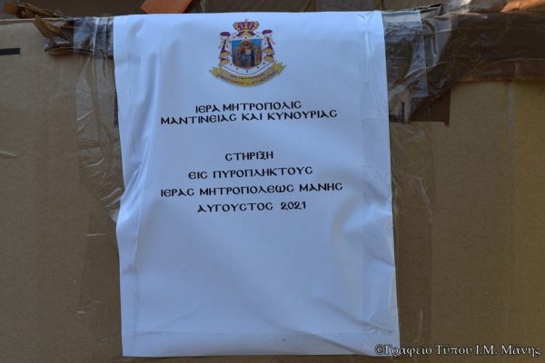 Ο Σεβασμιώτατος Μητροπολίτης Μάνης κ. Χρυσόστομος ευχαρίστησε δεόντως τον Σεβασμιώτατο Μητροπολίτη Μαντινείας και Κυνουρίας κ. Αλέξανδρο για την άμεση και πρακτική αυτή ανταπόκριση και τα φιλάδελφα και φιλάνθρωπα αισθήματα του Σεβασμιωτάτου και στην κοινή δέησή τους προσευχήθηκαν για την αποκατάσταση και υγεία πάντων των πυρόπληκτων.