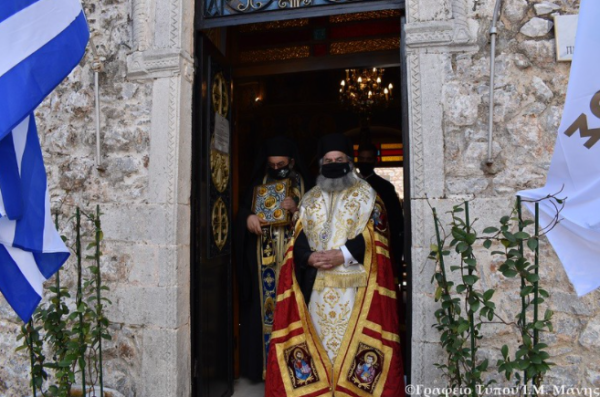 Στην Επίσημη Δοξολογία που τελέστηκε στον ιστορικό Ιερό Ναό Παμμεγίστων Ταξιαρχών Αρεόπολης χοροστάτησε ο Σεβ. Μητροπολίτης Μάνης κ. Χρυσόστομος Γ’, ο οποίος μετά το πέρας της, ευχήθηκε: «Τα ύψιστα ιδανικά που δονούσαν τις καρδιές των Ηρώων του 1821, δηλαδή η πίστη στο Θεό και η αγάπη προς την πατρίδα να παραμείνουν αδιάπτωτα και σήμερα, που ξεκινά μια νέα περίοδος, μετά τα 200 χρόνια της επετείου που εορτάζουμε». Ακολούθησε ο χαιρετισμός του Δημάρχου Αν. Μάνης κ. Ανδρεάκου και η εκφώνηση του πανηγυρικού της ημέρας από τον πρ. Υπουργό Εσωτερικών και Βουλευτή Επικρατείας κ. Παναγιώτη Θεοδωρικάκο.