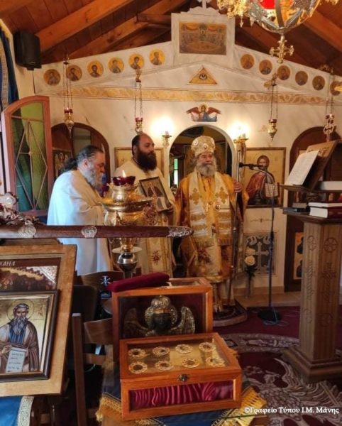 Στο Παρεκκλήσιο επ’ ονόματι των αγίων Ταξιαρχών, που ευρίσκεται στο ωραίο Μαυροβούνιο, περιοχής Γυθείου, το οποίο έχει επιμεληθεί ο πρωτ. π. Σταύρος Βλαστέλης, μετέβη σήμερα 29 Σεπτεμβρίου 2021, ο Σεβασμιώτατος Μητροπολίτης Μάνης κ. Χρυσόστομος Γ’ και τέλεσε την Θεία Λειτουργία συμπαραστατούμενος από τους ιερείς π. Σταύρο Βλαστέλη και π. Χριστόδουλο Κρουστάλη. Στο αναλόγιο έψαλε ο κ. Κυριάκος Δερδελάκος.