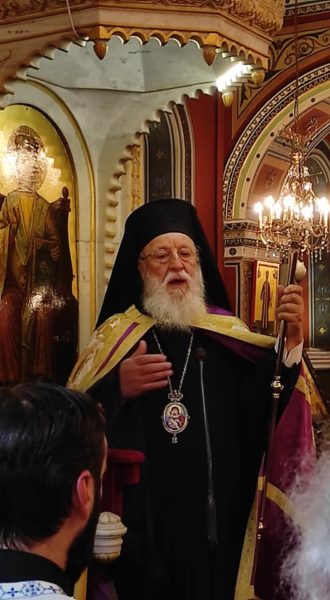 Στην Ακολουθία χοροστάτησε ο Σεβασμιώτατος Μητροπολίτης Μαντινείας και Κυνουρίας κ.κ. ΑΛΕΞΑΝΔΡΟΣ, πλαισιούμενος υπό του Βοηθού του, Επισκόπου Τεγέας κ. ΘΕΟΚΛΗΤΟΥ και κληρικών της Τριπόλεως χωρίς την παρουσία πιστών, λόγω των μέτρων της πανδημίαςτού κορωνοιού (COVID-19).