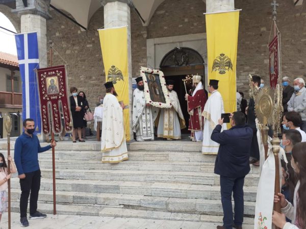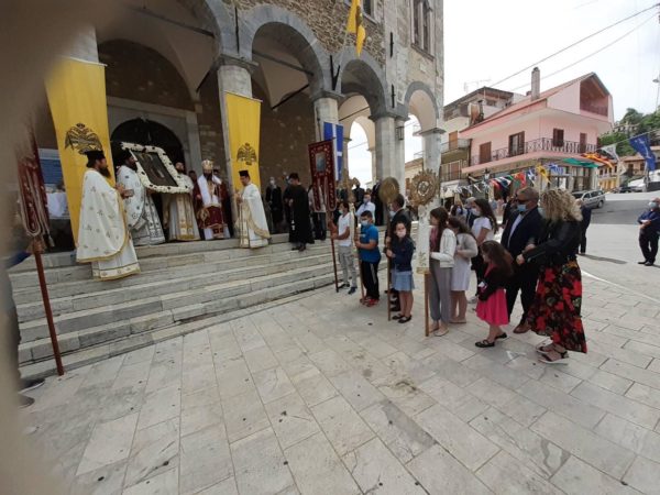 Κλήρος και Λαός με τα απαραίτητα μέτρα κατά της πανδημίας, συμμετείχε στη Θεία Λειτουργία και, μετά το πέρας αυτής, στην ιερά Λιτάνευση της θαυματουργού Εικόνος και του αγίου Λειψάνου του Οσίου πατρός Νείλου του Μυροβλύτου, εντός του χωριού, ακριβώς στα βήματα που περπάτησε ταπεινά τα πρώτα του χρόνια ο Άγιος στον τόπο που γεννήθηκε.