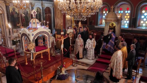 Στην Ακολουθία των Μ. Ωρών και της  Αποκαθηλώσεως στον Μητροπολιτικό Ι. Ν. Αγ. Βασιλείου Τριπόλεως συμμετείχε ο Σεβασμιώτατος Μητροπολίτης Μαντινείας και Κυνουρίας κ. Αλέξανδρος σήμερα, Μεγάλη Παρασκευή.