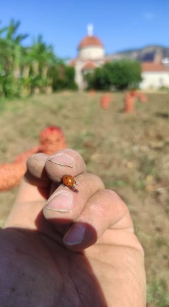 Η συγκομιδή ολοκληρώθηκε με γεύμα στον περίβολο της μικρής Εκκλησίας, που υπάρχει στο κτήμα.