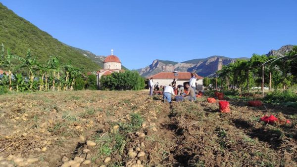Τη συγκομιδή της πατάτας στα κτήματα της Ιεράς Μονής Αγίου Νικολάου Σίντζας, στην Πλάκα Λεωνιδίου, πραγματοποίησε σήμερα, Παρασκευή 2 Ιουλίου 2021, όπως κάθε χρόνο, ο Σεβασμιώτατος Μητροπολίτης Μαντινείας και Κυνουρίας κ. Αλέξανδρος, με κληρικούς και λαϊκούς εθελοντές.