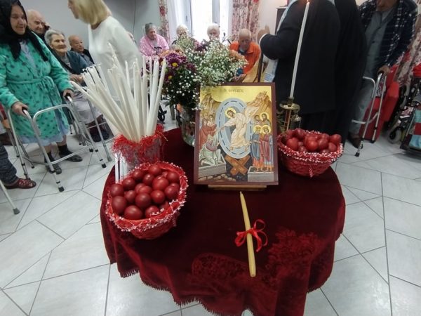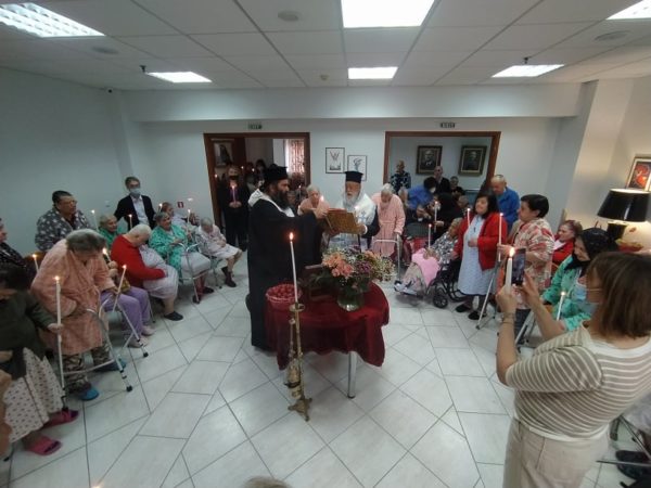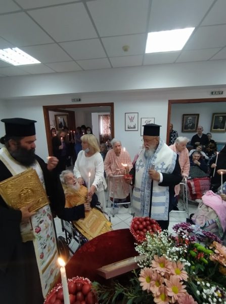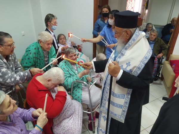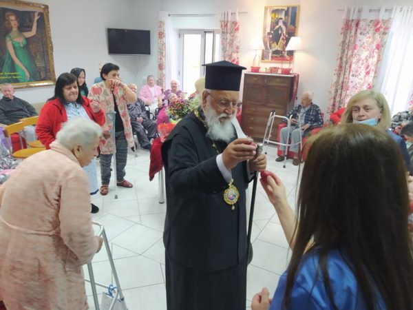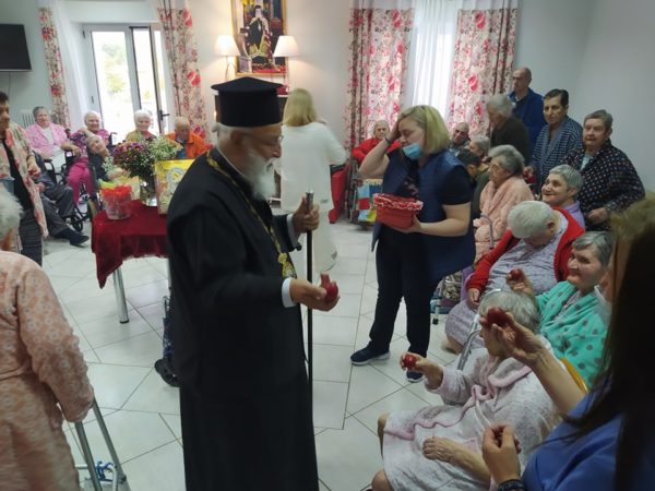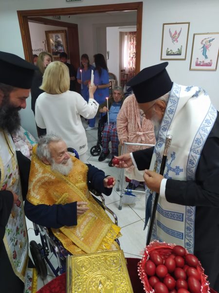 Νωρίτερα το απόγευμα, ο Σεβασμιώτατος τέλεσε την Αναστάσιμη Ακολουθία στο Δεκάζειο Εκκλησιαστικό Γηροκομείο μαζί με τον φιλοξενούμενο στο Ίδρυμα Σεβασμιώτατο Μητροπολίτη Νεαπόλεως του Πατριαρχείου Ιεροσολύμων κ. Αμβρόσιο. Δόθηκε έτσι η ευκαιρία στους γέροντες να μετάσχουν στην χαρά της Αναστάσεως.