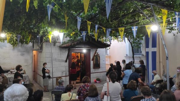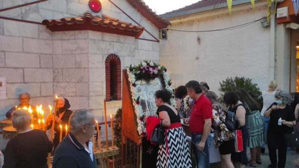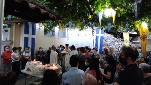 Το εσπέρας της εορτής, 25 Ιουλίου 2021, τελέσθηκαν οι ιερές Ακολουθίες του Αγιασμού, του Εσπερινού και της ιεράς Παρακλήσεως προς τιμήν της Αγίας.