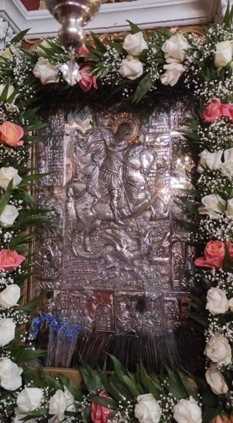 Η μνήμη του αγίου Μεγαλομάρτυρος Γεωργίου, εορτάστηκε σήμερα Δευτέρα της Διακαινησίμου 3 Μαίου 2021, σε πολλές ενορίες που τιμούνται επ’ονόματί του, αλλά και σε πάρα πολλά παρεκκλήσια και εξωκκλήσια. Ο Σεβασμιώτατος Μητροπολίτης Μαντινείας και Κυνουρίας κ.κ. Αλέξανδρος, προεξήρχε του Όρθρου και της Θείας Λειτουργίας, στον πανηγυρίζοντα Ιερό Ναό Αγίου Γεωργίου Ροεινού, στον Φάλανθο Μαντινείας.
