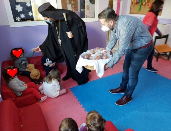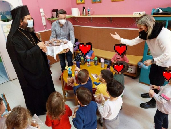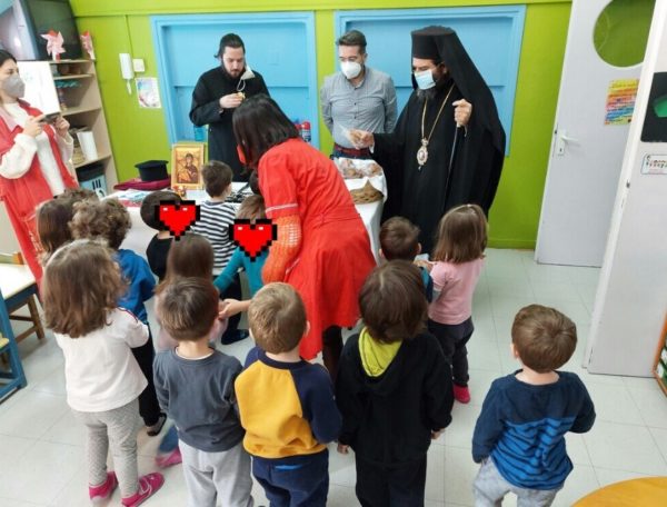 Ο Σεβασμιώτατος, την Πέμπτη, 13 Ιανουαρίου 2022, μίλησε στα παιδιά και τους εξήγησε το έθιμο της Βασιλόπιττας, το έργο και τον βίο του Αγίου Βασιλείου και ευχήθηκε σε όλους καλή και ευλογημένη χρονιά.