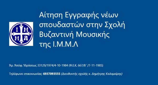 Ηλεκτρονικές εγγραφές στη Σχολή Βυζαντινής Μουσικής