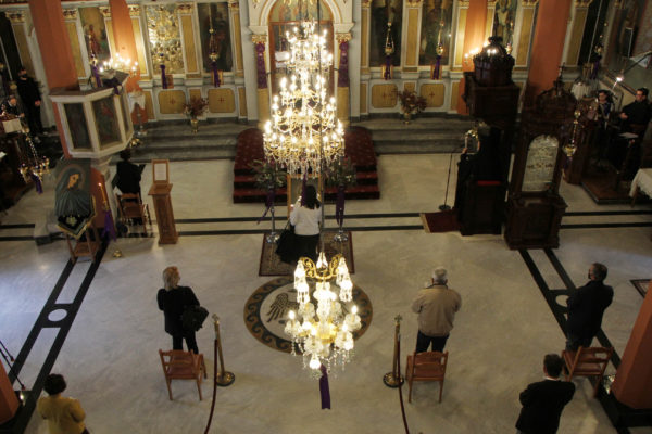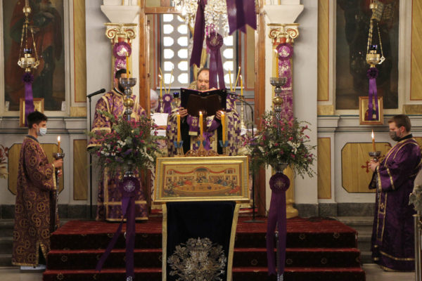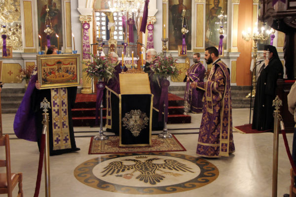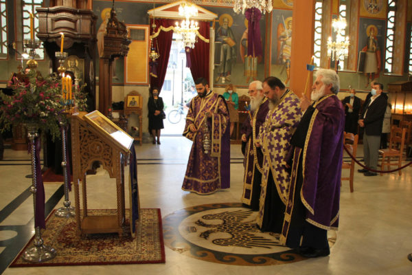 Στην Ακολουθία συμμετείχαν πιστοί σε κλίμα ευλάβειας και κατάνυξης, τηρουμένων των υγειονομικών μέτρων.