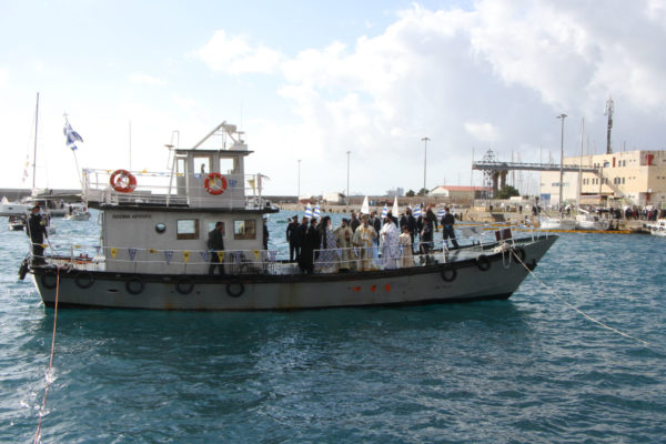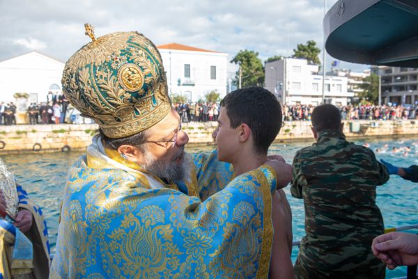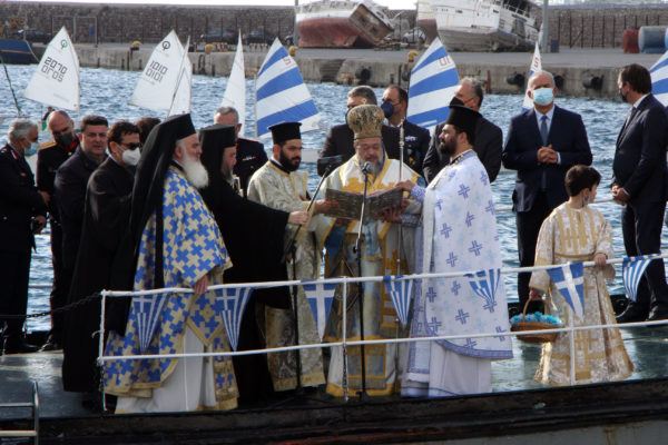 Ακολούθησε η τέλεση του Μεγάλου Αγιασμού και στη συνέχεια έλαβε χώρα η τελετή κατάδυσης του Τιμίου Σταυρού και ο Αγιασμός των Υδάτων στο λιμάνι της πόλης.