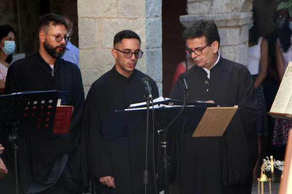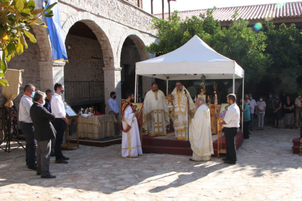 Κατά τον όρθρο και την πανηγυρική Θεία Λειτουργία προεξήρχε ο Σεβ. Μητροπολίτης Μεσσηνίας κ. Χρυσόστομος, πλαισιούμενος από τον Καθηγούμενο Αρχιμ. Προκόπιο Σμυρνή, τον Αρχιμ. Αλέξιο Σαραντόπουλο και το Διάκονο Θεόφιλο Κυριάκο.