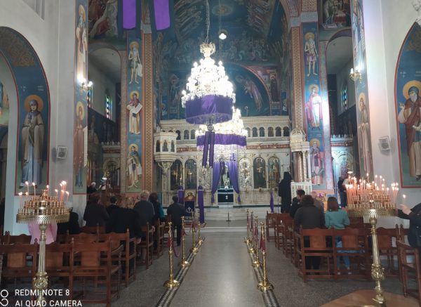 Ο Σεβασμιώτατος ευλόγησε το εκκλησίασμα και ευχήθηκε δύναμη για το υπόλοιπο της Μεγάλης Εβδομάδας και καλή Ανάσταση.