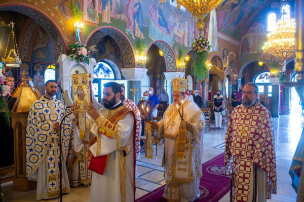 Mε το πέρας της θείας λειτουργίας, αναπέμφθηκε δέηση ενώπιον της Ιεράς Εικόνος στον αύλειο χώρο του Ναού, ενώ δεν πραγματοποιήθηκε η καθιερωμένη λιτάνευση, λόγω των μέτρων κατά της πανδημίας.