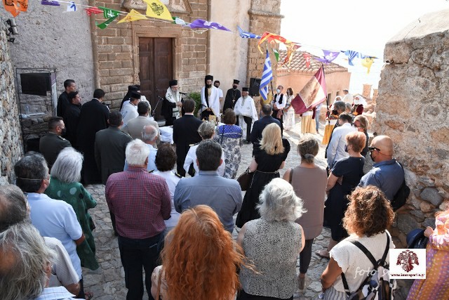 Παναγιώτατε πάτερ καὶ δέσποτα, πρωτοκάθεδρε τῆς τοῦ Χριστοῦ ἐν Μονεμβασιᾳ Ἐκκλησίας. Ἐξοχωτάτη κυρία ὑπουργέ. Ἀξιότιμε κύριε Δήμαρχε. Αξιότιμε κύριε περιφερειάρχα , Αξιοτιμοι κυριοί βουλευτές του νομού μας. Αξιότιμε κύριε πρόεδρε της τοπικής κοινότητος Μονεμβασίας Ἀξιότιμοι κύριοι ἐκπρόσωποι τῶν στρατιωτικῶν αρχών , και των σωμάτων Ασφαλείας, Λαὲ τοῦ Θεοῦ εὐλογημένε,