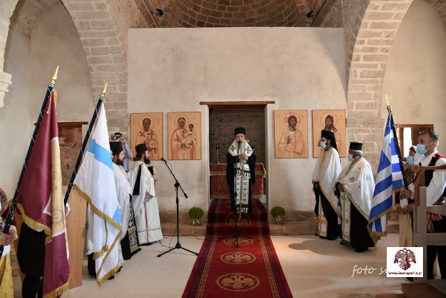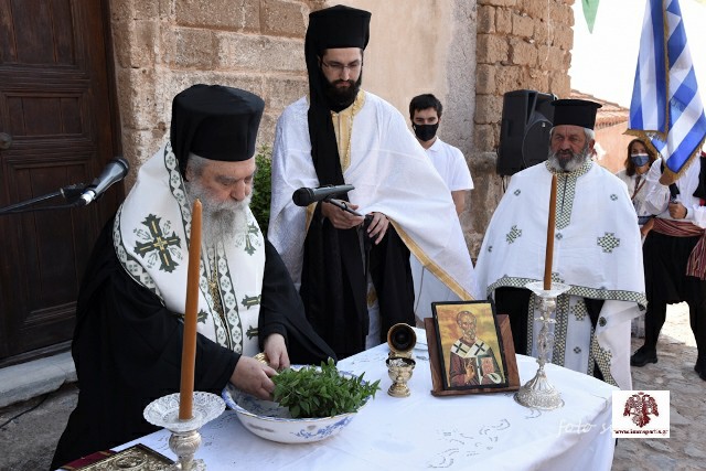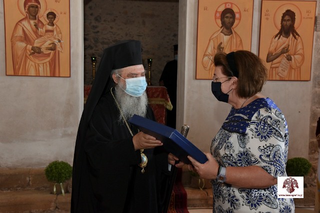 Εις ανάμνηση δε αυτού του μεγάλου και ιστορικού για τον τόπο μας γεγονότος που μετά από 306 ολόκληρα χρόνια ξανά λειτουργεί ο ιερός Ναός και ως ελάχιστο αντίδωρο για την πρόσφορα σας δεχθείτε παρακαλώ κυρία Υπουργέ, δια των χειρών του σεπτού Ποιμενάρχου μας, ιερό εκτύπωμα του Αγίου Νικολάου ως φυλακτήριο στο σπουδαίο και πολυεύθυνο έργο σας.