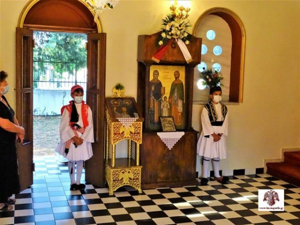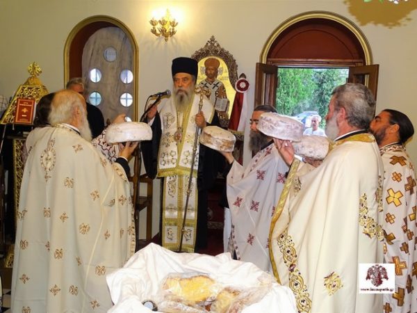Η εσπερινή λατρευτική σύναξη επισφραγίστηκε με την τέλεση Τρισάγιου για όλους εκείνους, που αναπαύονται στο Κοιμητήριο από την έναρξη της λειτουργίας του μέχρι σήμερα. Νωρίτερα, ο Σεβασμιώτατος απευθυνόμενος στο εκκλησίασμα επισήμανε, ότι θα πρέπει να ωφελούμαστε από τις σκέψεις, που έχουμε για τους κεκοιμημένους αδελφούς μας, αφού αυτοί μας διδάσκουν το εφήμερο της ζωής και την ανάγκη για αξιοποίηση του χρόνου που έχουμε στη Γη με επαναφορά στην εν Χριστώ ζωή και αποβολή των υλιστικών προτύπων. Ολοκληρώνοντας την ομιλία του, ο Σεβασμιώτατος συνεχάρη τα παιδιά με τις παραδοσιακές φορεσιές, που έδωσαν ένα ιδιαίτερο χρώμα στον εορτασμό, ενώ ευχήθηκε στους ευλαβείς προσκυνητές να έχουν την ευλογία του τιμώμενου Αγίου.
