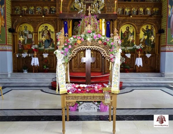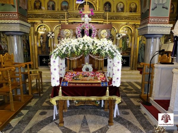 Οι πιστοί, με την τήρηση όλων των προβλεπομένων μέτρων προστασίας για τον περιορισμό διασποράς του κορωνοϊού, συγκεντρώθηκαν στον προαύλιο χώρο του Ναού, για να συμπροσευχηθούν και να ψάλουν τα Εγκώμια του Επιτάφιου θρήνου.