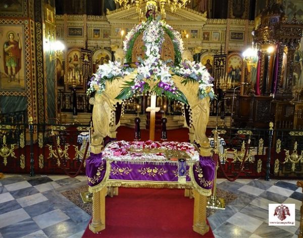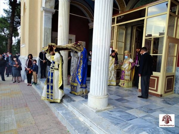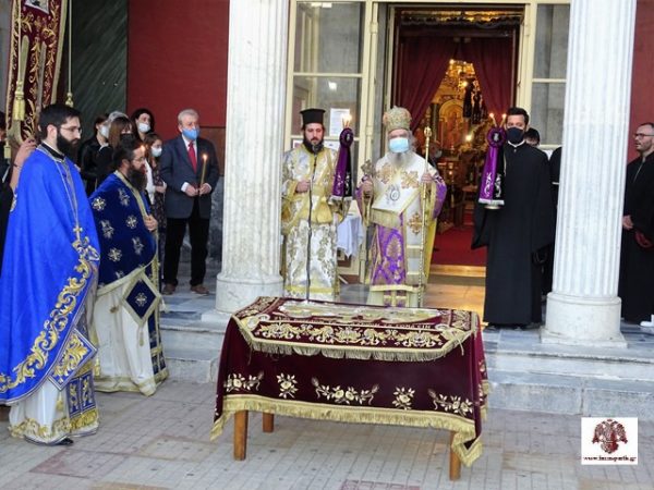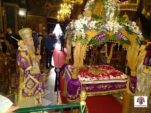 Φέτος, δυστυχώς, λόγω των υγειονομικών μέτρων, δεν πραγματοποιήθηκε η συγκέντρωση των Επιταφίων των τεσσάρων Ενοριών της πόλης στην κεντρική πλατεία και η τέλεση δέησης εκεί από τον Ποιμενάρχη. Ωστόσο, η δέηση εψάλη στην είσοδο του Μητροπολιτικού Ναού, αφού προηγήθηκε περιφορά του Επιταφίου, χωρίς το κουβούκλιό του, πέριξ του Ναού.