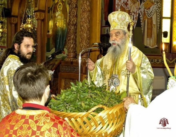 Ο Σεβασμιώτατος στην ομιλία του αναφέρθηκε στην πανηγυρική υποδοχή του Ιησού στα Ιεροσόλυμα, την οποία ο Ίδιος αντιμετώπισε με σκεπτικισμό όντας ταπεινός, αμίλητος και λυπημένος. Οι λόγοι που οδήγησαν τον Κύριο σε αυτή την στάση ήταν επειδή γνώριζε κατά πρώτον πως οι ζητωκραυγές ήταν ζυμωμένες με ιδιοτέλεια, κατά δεύτερον ότι μεγάλο μέρος των Γραμματέων και Φαρισαίων, αλλά και του λαού, Τον έβλεπαν ως κοσμικό άρχοντα που θα τους λυτρώσει από τον ρωμαϊκό ζυγό αδιαφορώντας όμως για τον ζυγό της αμαρτίας τους και κατά τρίτον επειδή ο Χριστός, ως παντογνώστης και καρδιογνώστης, γνώριζε την μεταστροφή του κλίματος μέσα σε λίγες ημέρες και την αχαριστία που θα επιδείκνυαν ακόμα και ευεργετηθέντες από το Υιό του Θεού.