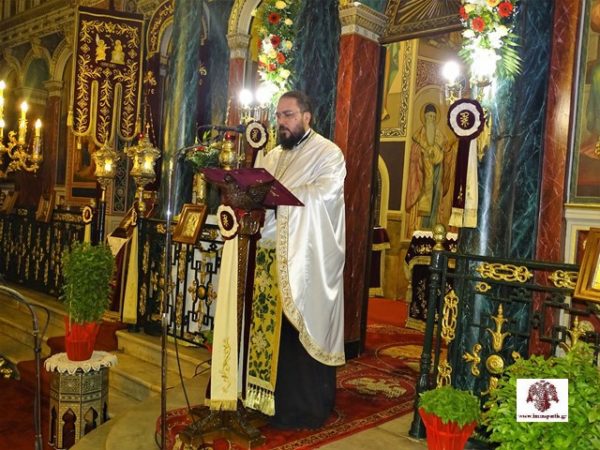 Τον θείο λόγο κήρυξε ο Αρχιερατικός Επίτροπος και εφημέριος Βλαχιώτη, Πρωτ. Βασίλειος Καπερώνης, ο οποίος με αφορμή τον βίο του Αγίου Ευσταθίου, αναφέρθηκε στην αρετή της υπομονής. Ολοκληρώνοντας ευχήθηκε στον Σεβασμιώτατο υγεία και μακροημέρευση, ώστε να συνεχίσει απρόσκοπτα το πλούσιο πνευματικό, φιλανθρωπικό και κοινωνικό του έργο.