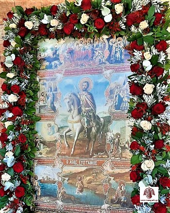 Τη μνήμη του Αγίου Μεγαλομάρτυρος Ευσταθίου, της συζύγου του Θεοπίστης και των τέκνων αυτών, Αγαπίου και Θεοπίστου τίμησε η Εκκλησία μας την Δευτέρα 20 Σεπτεμβρίου 2021. Παράλληλα με την εορτή στην Ιερά Μητρόπολη Μονεμβασίας και Σπάρτης, ο Σεβασμιώτατος Μητροπολίτης κ. Ευστάθιος εόρτασε τα σεπτά του Ονομαστήρια με λιτό τρόπο. Στον διήμερο εορτασμό είχαν εκφράσει την επιθυμία να συμμετέχουν αρκετοί Αρχιερείς, ωστόσο ο σεπτός Ποιμενάρχης ευγενικά τους απέτρεψε, στο πλαίσιο της συνολικής κοινωνικής προσπάθειας για τον περιορισμό διασποράς του κορωνοϊού.