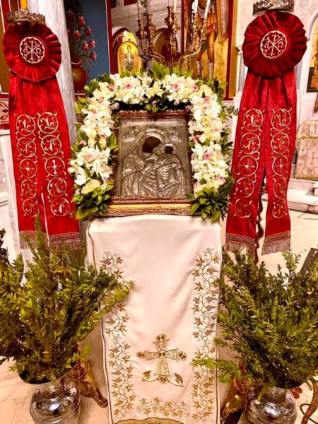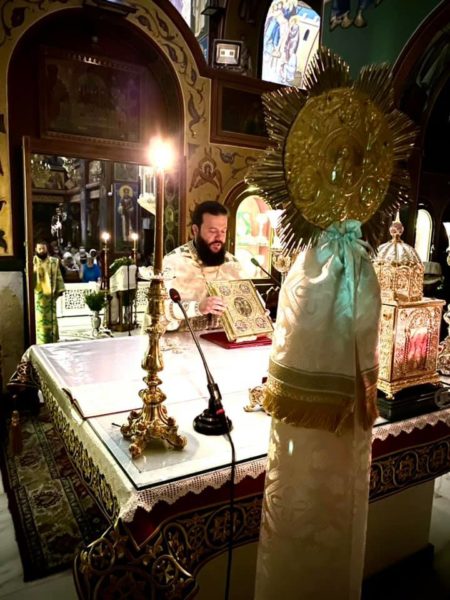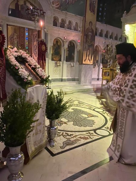 Κατά την διάρκεια της Ιεράς Αγρυπνίας τέθηκε σε προσκύνηση η Ιερά θαυματουργός Εικόνα της Παναγίας της Μυρτιδιώτισσας. Η παρουσία της εικόνας αυτής, που προέρχεται από την Τούζλα της Μ. Ασίας, αποτελεί ιδιαίτερη ευλογία για τον Μητροπολιτικό Ναό.