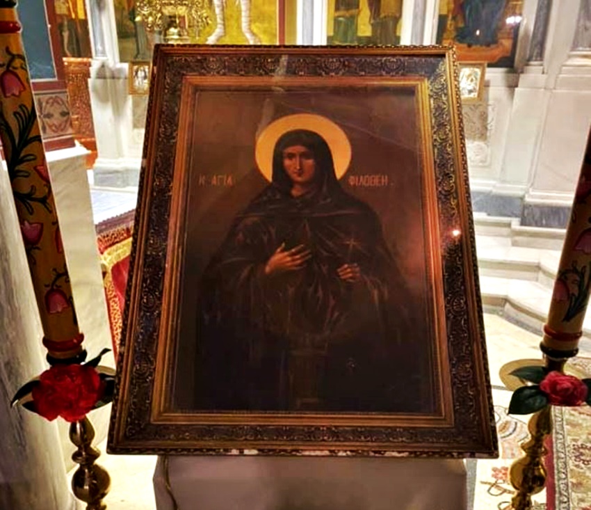 Ιερά αγρυπνία για την μνήμη της Αγίας Φιλοθέης της Αθηναίας, η οποία εκοιμήθη στην περιοχή της Καλογρέζας και στο εκεί μετόχι του Περισσού, και που τα κτήματα της εκτείνονταν στις περιοχές τής Καλογρέζας του Περισσού της Νέας Ιωνίας και της Αλσουπόλεως και γι’ αυτό θεωρείται τοπική Αγία, τελέσθηκε στο Μητροπολιτικό Ναό Αγίων Αναργύρων Νέας Ιωνίας.