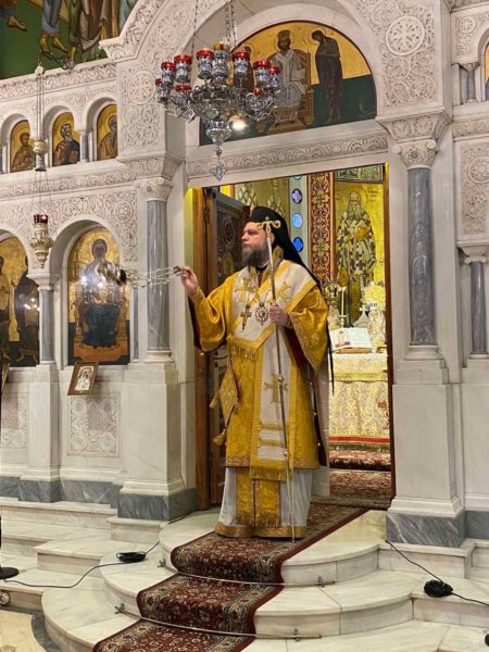 Της Αρχιερατικής Θείας Λειτουργίας προεξήρχε ο Σεβ. Μητροπολίτης Νέας Ιωνίας, Φιλαδελφείας, Ηρακλείου και Χαλκηδόνος κ. Γαβριήλ, ο οποίος χοροστάτησε στον Όρθρο, με τη συμμετοχή κληρικών της Ιεράς Μητροπόλεως.