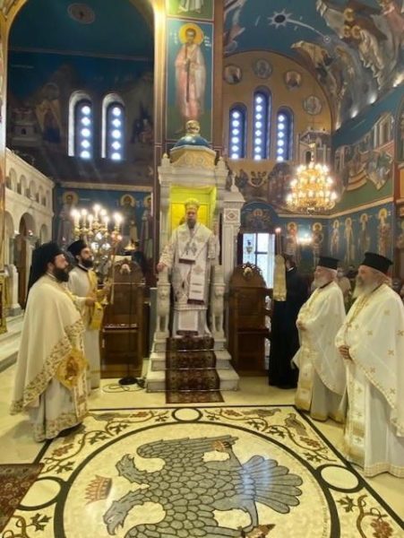 Ο Σεβ. Μητροπολίτης Νέας Ιωνίας, Φιλαδελφείας, Ηρακλείου και Χαλκηδόνος κ. Γαβριήλ χοροστάτησε στην ακολουθία του Όρθρου και στη συνέχεια προεξήρχε της πανηγυρικής Θείας Λειτουργίας, πλαισιωμένος από κληρικούς της Ιεράς Μητροπόλεως.